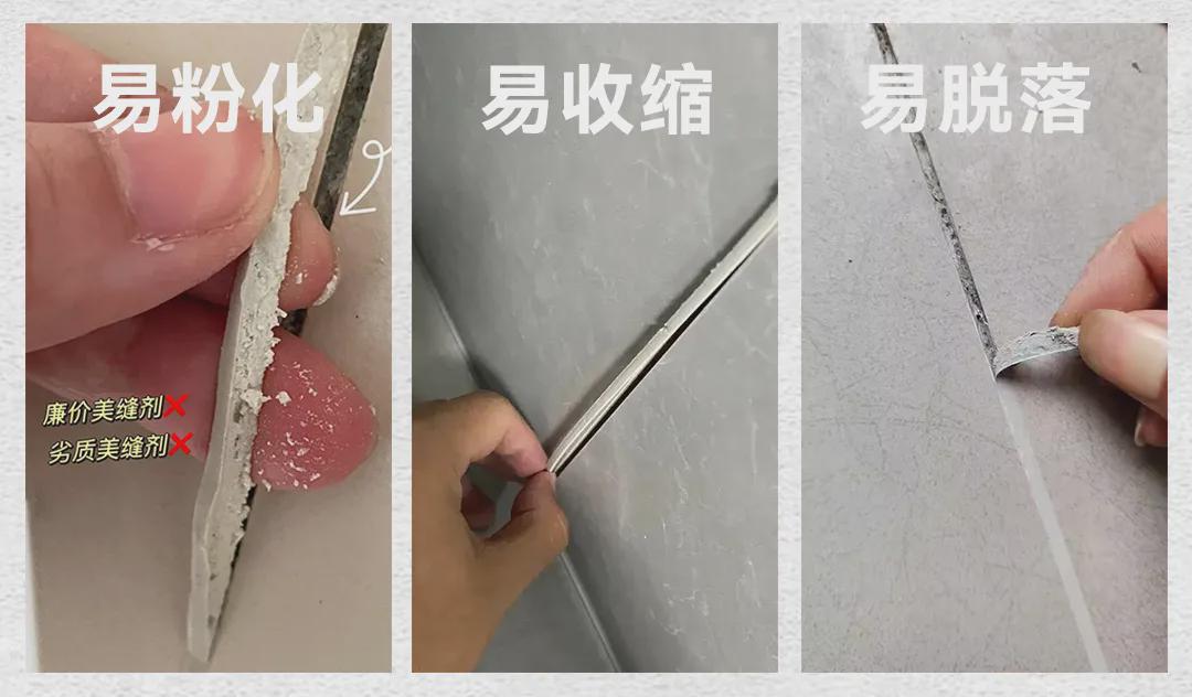 而低价美缝为压低成本,添加的环氧树脂含量少且纯度低或添加了便宜的碳酸钙(俗称石粉),含有杂质,易粉化、收缩、脱落,使用寿命短,美缝效果达不到预期。