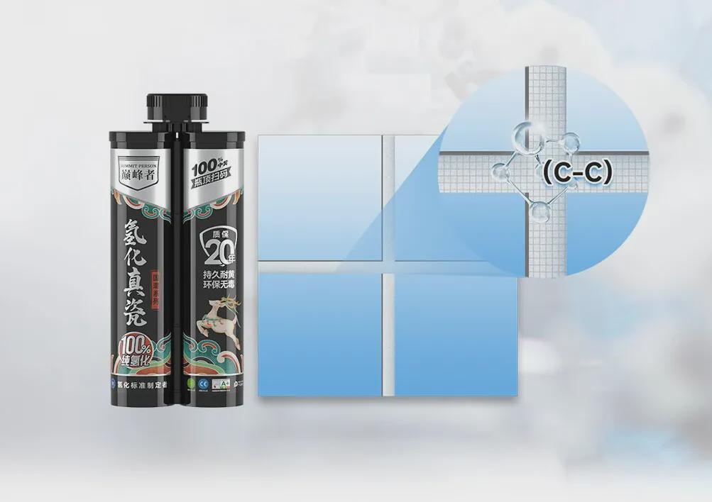 像巅峰者氢化真瓷,通过真氢化技术,将材料中的碳碳双键转换成碳碳单键,使分子结构更稳定,大幅度提升产品性能,使美缝剂粘接力更强,更耐高低温、防霉抗潮。