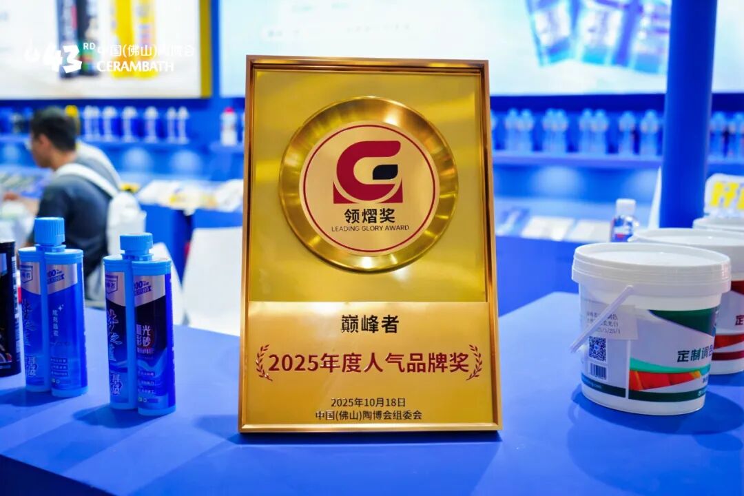 2025年10月18日,第43届中国(佛山)国际陶瓷及卫浴博览交易会在佛山国际会议展览中心展馆隆重开幕! 中国陶瓷工业协会瓷砖美缝技术委员会会长、浙江巅峰实业董事长黄章林作为主礼嘉宾,出席了第43届佛山陶博会开幕典礼。黄总与佛山市政府相关领导及中陶协领导共同上台,启动象征本届展会正式启航的“钥匙”,为四天的行业盛会拉开帷幕。 在本届展会及同期行业评选活动中,巅峰者凭借多年技术积累、完善的产品矩阵与专业服务能力,荣获“2025年度人气品牌”殊荣。这一奖项既体现了巅峰者在终端消费者与专业渠道中的高度认知度,也印证了巅峰者在产品力、色彩创新、施工体验与售后服务等维度的综合竞争力。长期以来,巅峰者深谙美缝研发领域,不断完善从色彩到工艺、从视觉到耐久的全链路瓷砖美缝解决方案,以持续创新赢得市场与口碑。 在本届美缝展馆内,巅峰者携「巅峰碳环定制色」「纯氢化系列」「梦之蓝系列」等全线产品集中亮相,以更高性能、更高颜值的产品矩阵,为客户提供高标准、高品质的美缝解决方案。展区现场不仅展示了品牌在材料技术与色彩表达方面的最新成果,也为到访嘉宾带来了直观的产品体验与施工示范。 本届佛山陶博会既是对巅峰者品牌积淀的检阅,也是其面向市场与用户的积极宣言。黄章林会长的权威出席、“2025年度人气品牌”的荣誉背书,以及全线产品的集中亮相,共同构成巅峰者以实力与服务引领美缝行业走向规范化、精细化与美学化的清晰路径。巅峰者诚邀更多行业伙伴与用户莅临展位,共同见证美缝行业的新标准与新机遇。