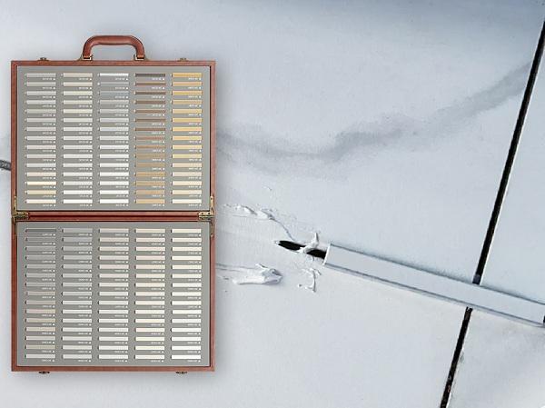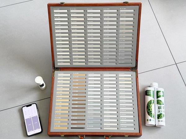 巅峰者搭建了瓷砖美缝行业内3000+真实砖面数据库为核心,并以150色色卡箱呈现,精准覆盖99%主流瓷砖颜色,打造一套所见即所得的调色系统。一线施工现场即可实现快速配色、瓷砖验色、即时调整,极大提高调色的交付效率。